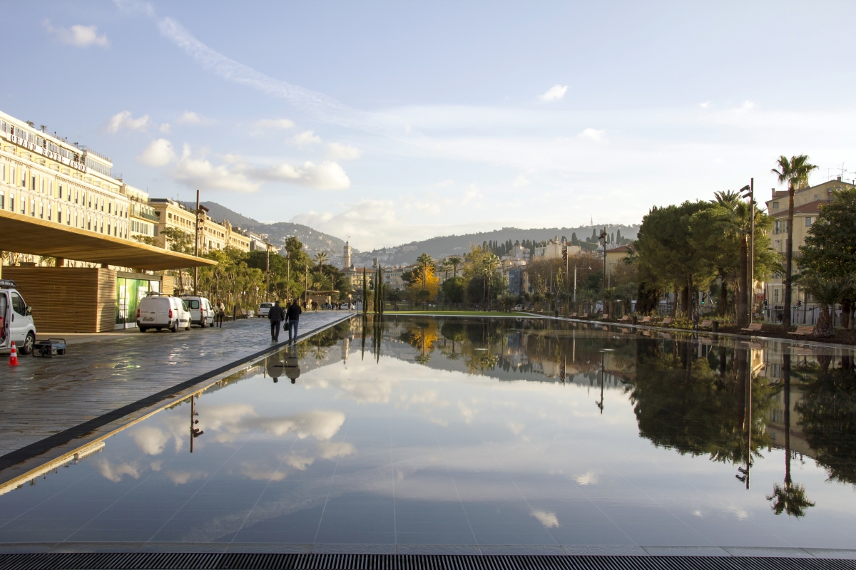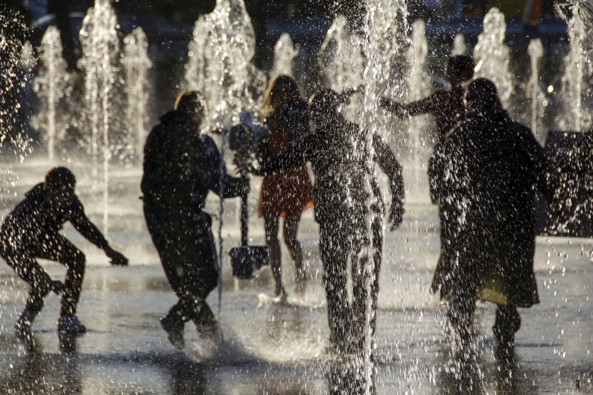 Когда фонтаны на несколько минут отключаются, территория превращается в огромное зеркало.