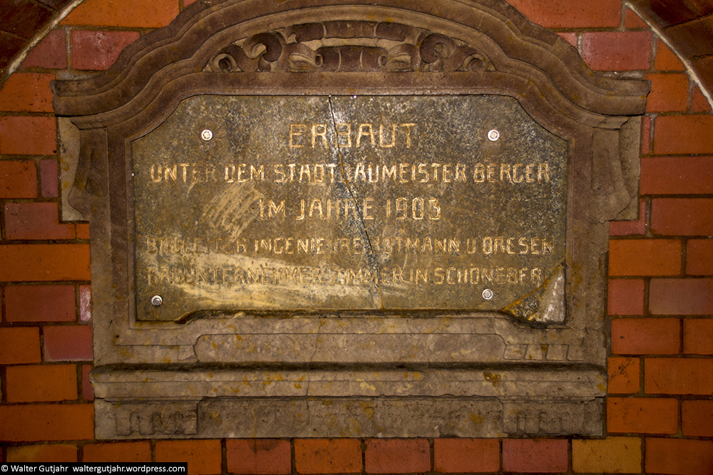 Здесь же на стене — памятная доска: «Тоннель построен в 1903 году главным городским строителем Бергер». (нем. «Erbaut unter dem Stadtbaumeister Berger im Jahre 1903»).