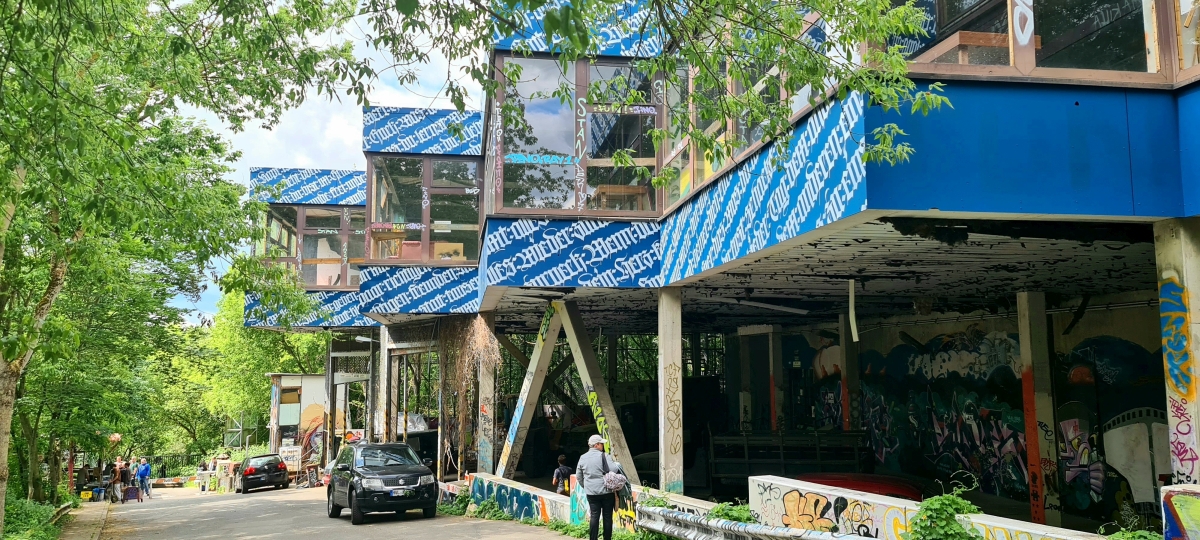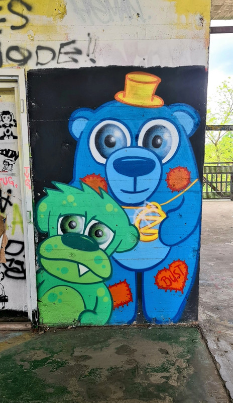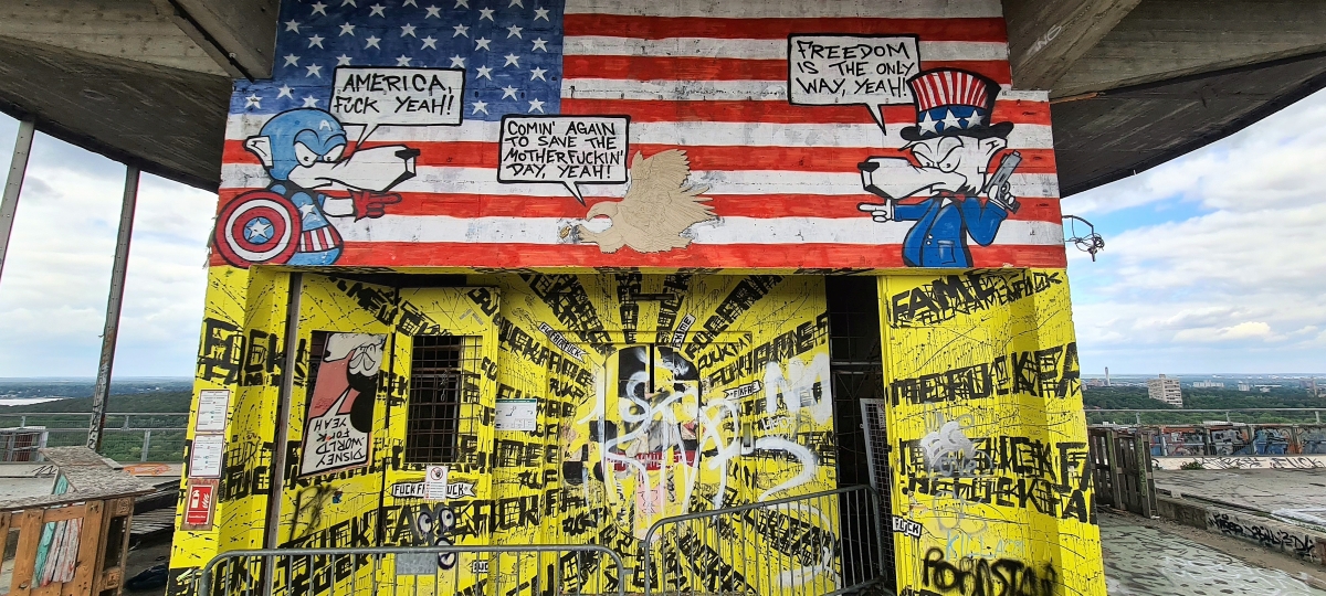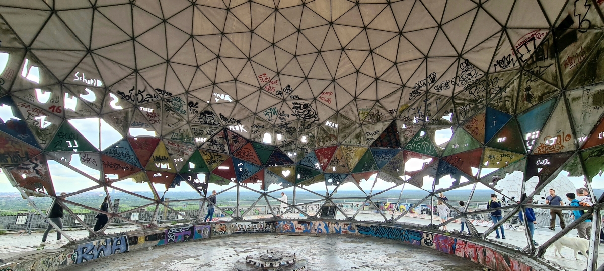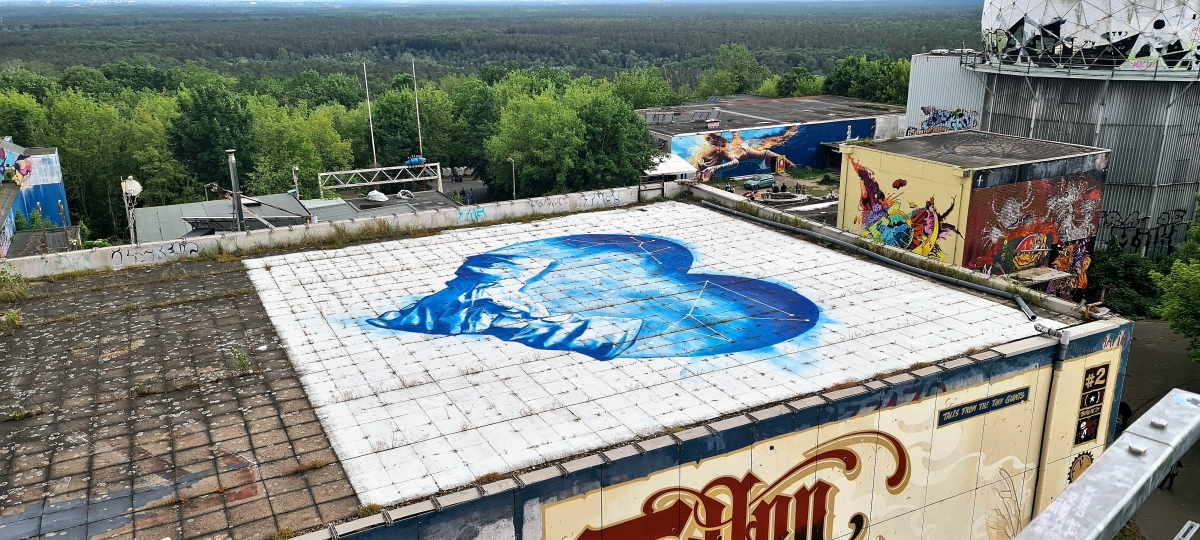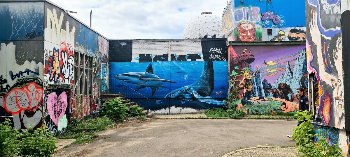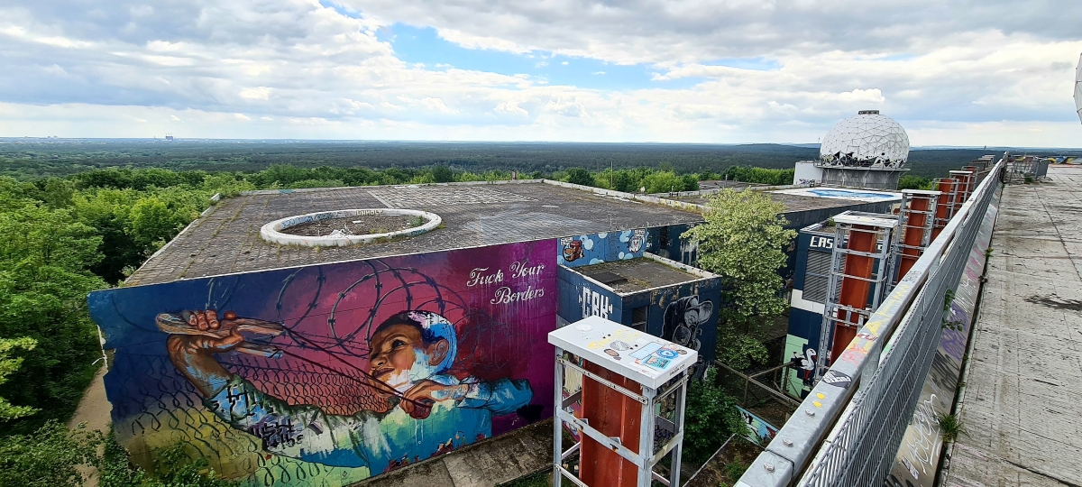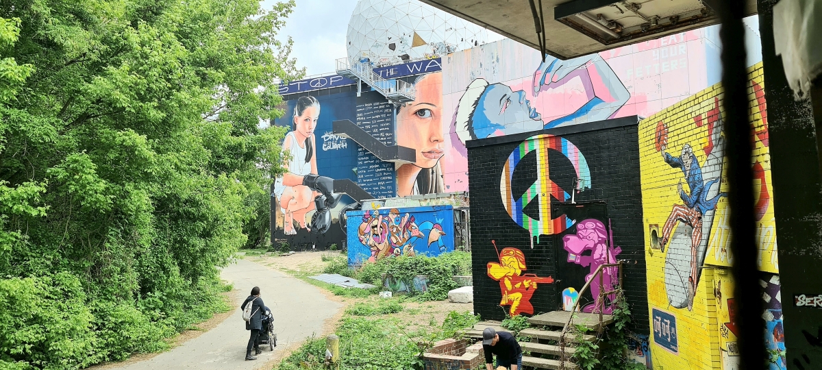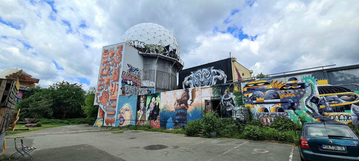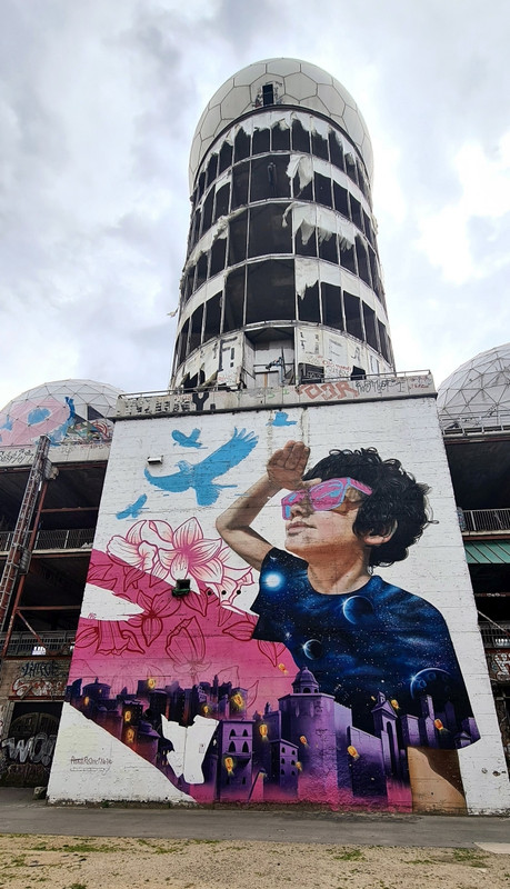 Прогулялись от станции Грюневальд на вершину горы Тойфельсберг (нем. Teufelsberg) и обратно. Также мы посетили территорию бывшей американской военной станции РЛС. Сейчас она собой представляет гигантский арт-объект. Все свободные места здесь покрыты граффити художниками со всего мира.