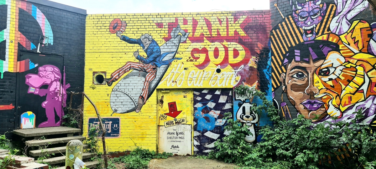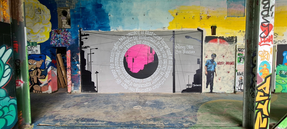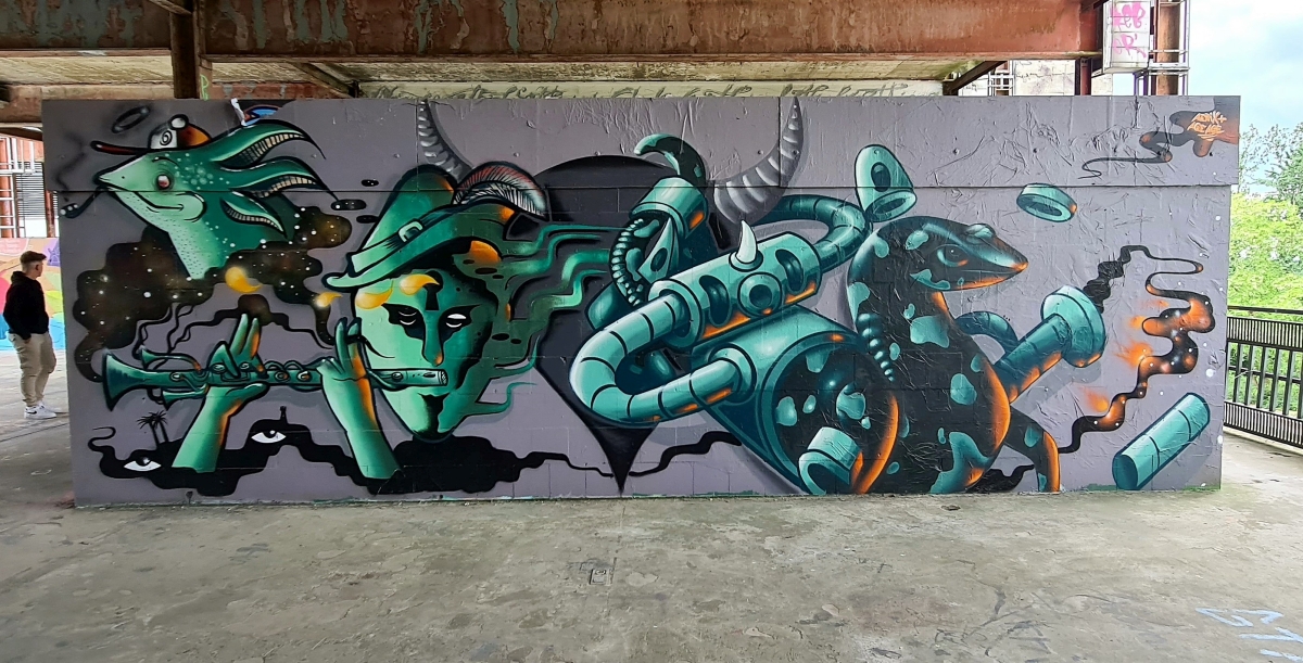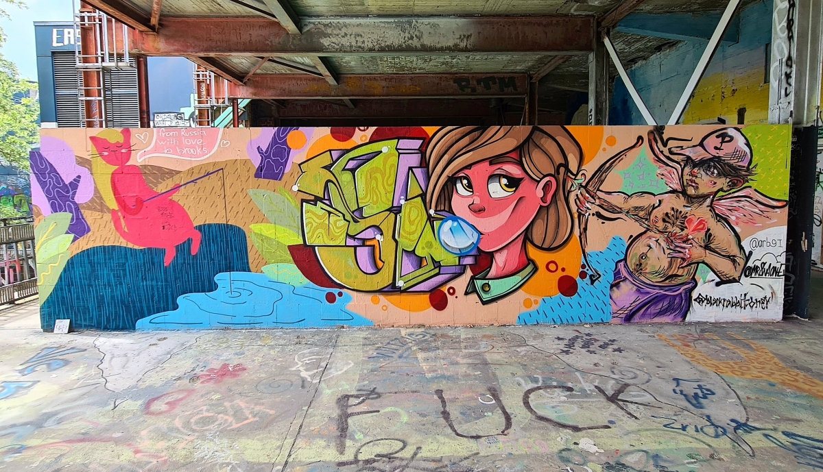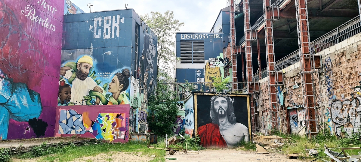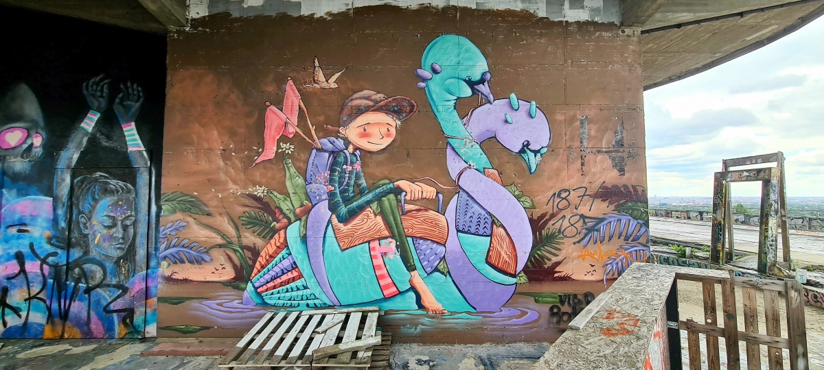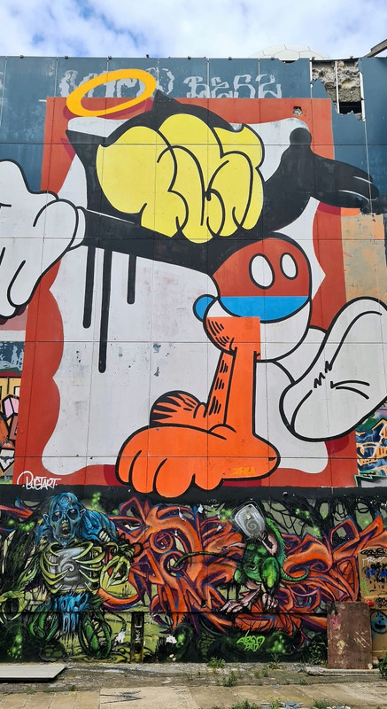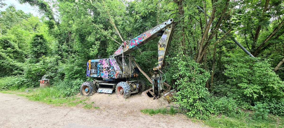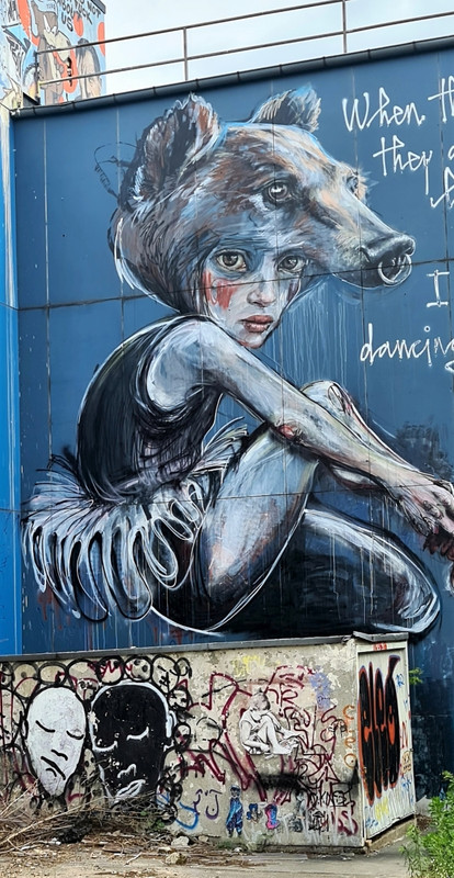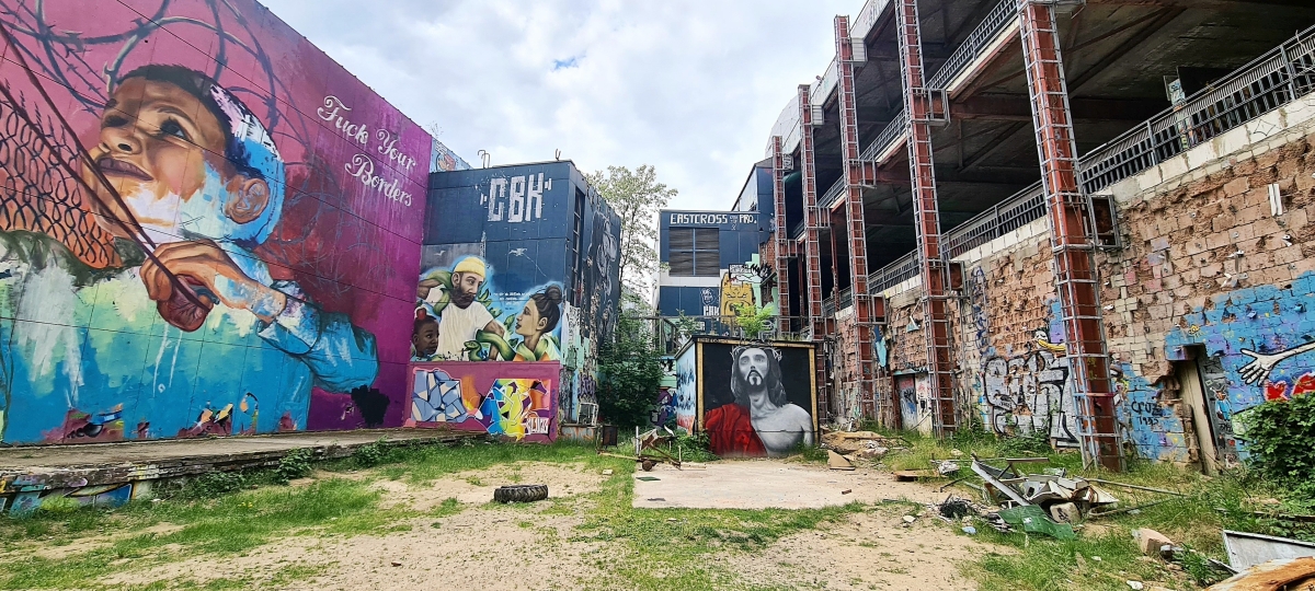 Прогулялись от станции Грюневальд на вершину горы Тойфельсберг (нем. Teufelsberg) и обратно. Также мы посетили территорию бывшей американской военной станции РЛС. Сейчас она собой представляет гигантский арт-объект. Все свободные места здесь покрыты граффити художниками со всего мира.