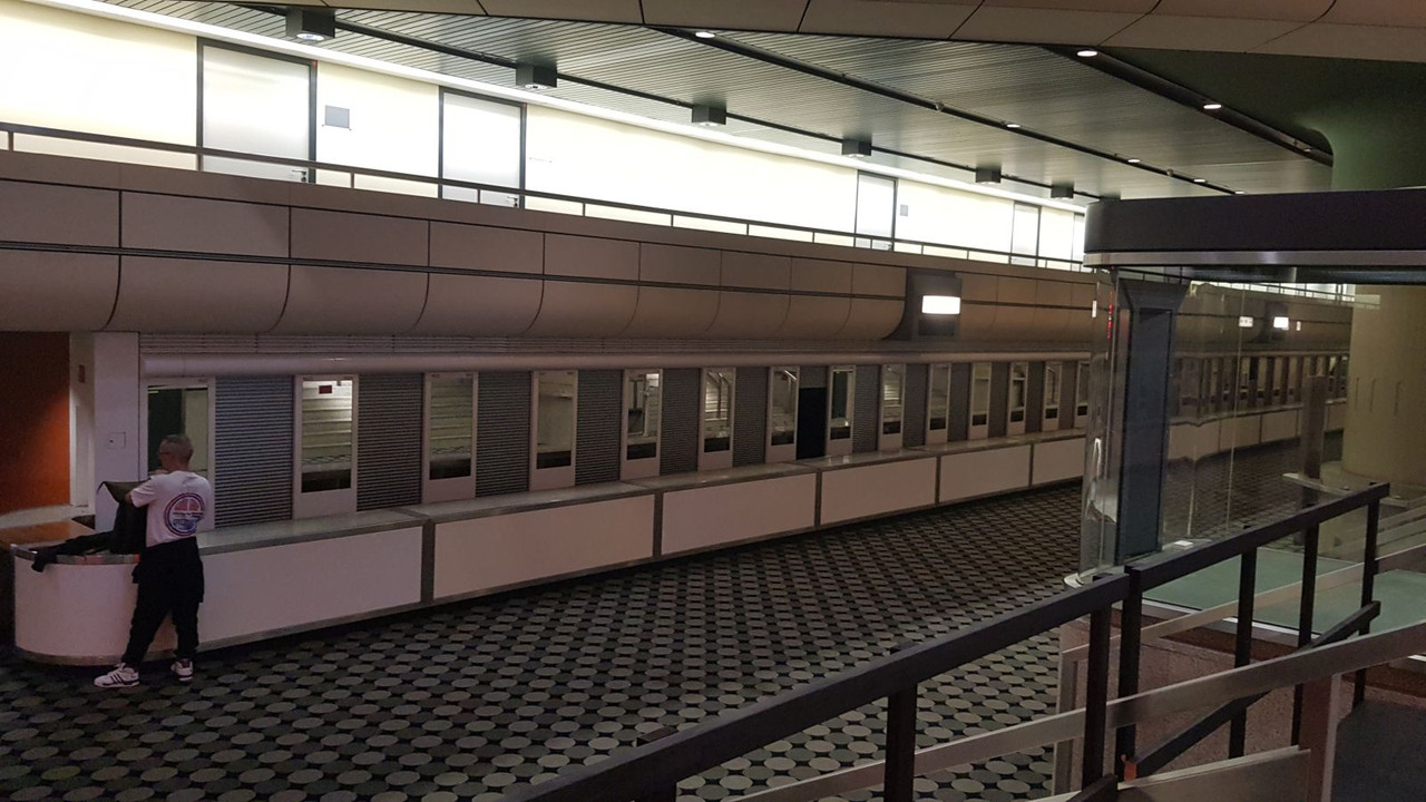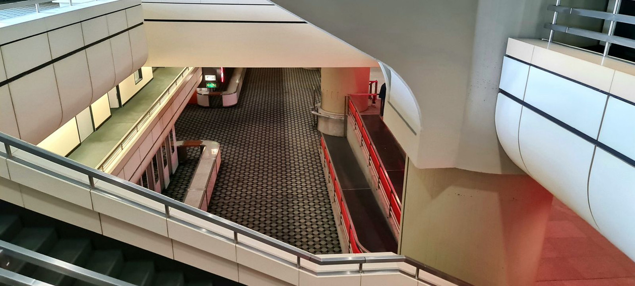 Здание хоть и было закрыто (якобы из-за убытков) более 10 лет назад в апреле 2014 года, оно совсем не выглядит заброшенным. Все лампы горят, все информационные таблички подсвечены, нет никаких граффити или разрушениv, только по ковровому покрытию на полу заметно, что оно давно не видело моющих средств. Кстати к ковру мы вернёмся немного позже.