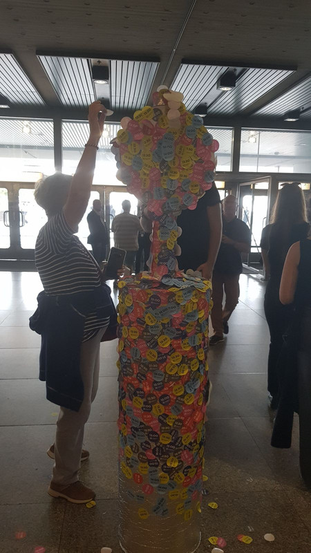 Из-за большого числа желающих попасть внутрь, каждому посетителю разрешалось находится внутри здания всего 90 минут. На входе каждый получал наклейку со временем, к которому ему нужно покинуть здание. На выходе народ клеил эти наклейки на одном из рекламный столбов.