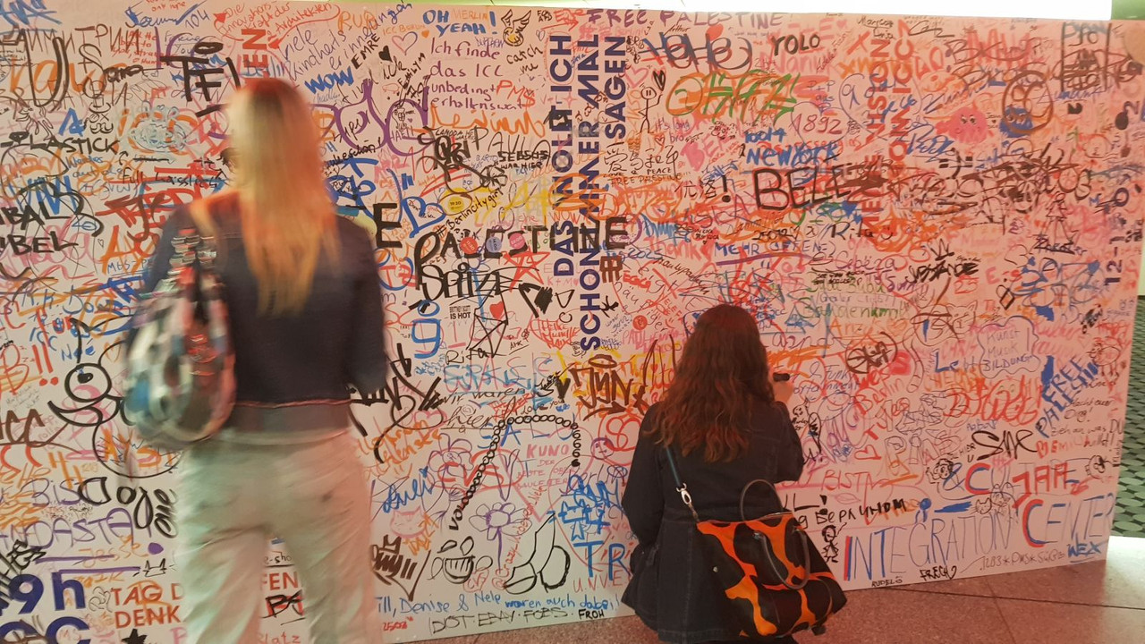 На выходе, посетители могли оставить свои пожелания или просто приветы на специальной стене.