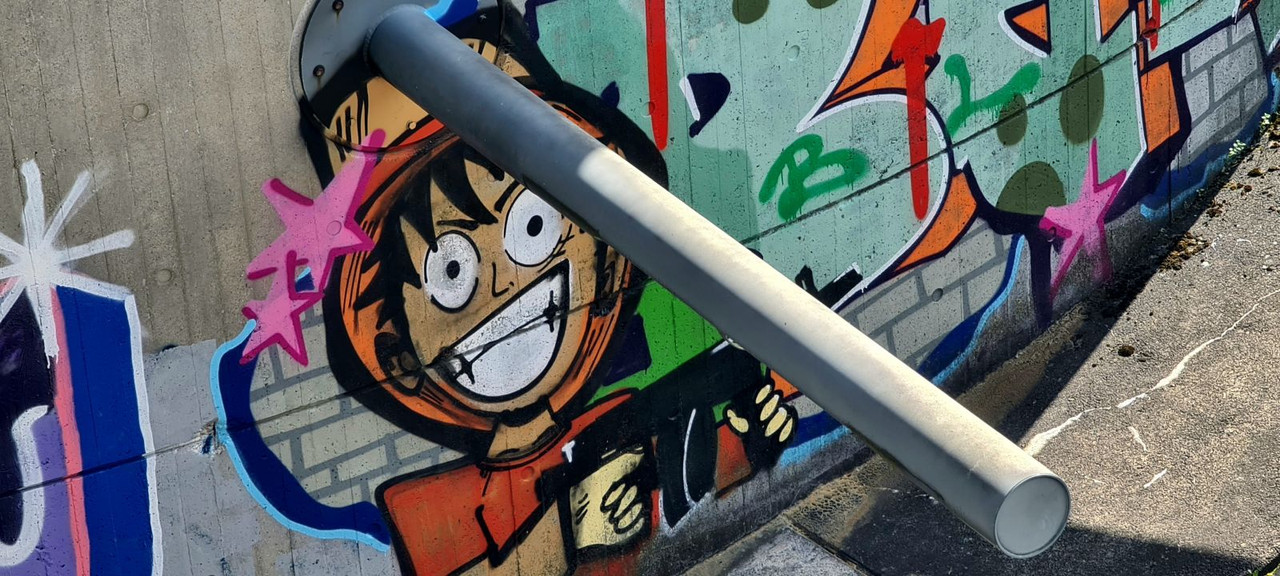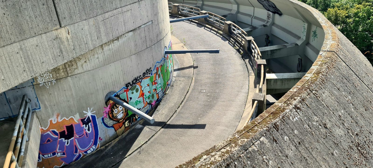 Въезд на парковку. Сюда всё-таки смогли забраться уличные «художники».