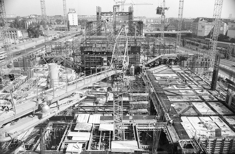 Международный конгресс-центр (ICC) был стройкой грандиозных масштабов: с 1975 по 1979 годы было использовано 120 000 кубометров бетона, 57 000 километров стальной арматуры, 1000 километров электрических кабелей и 17 000 светильников. Политически проект вызывал споры. «Боже мой, вы что, с ума сошли?» — якобы спросил лидер фракции ХДС у сенатора по строительству от СДПГ.
