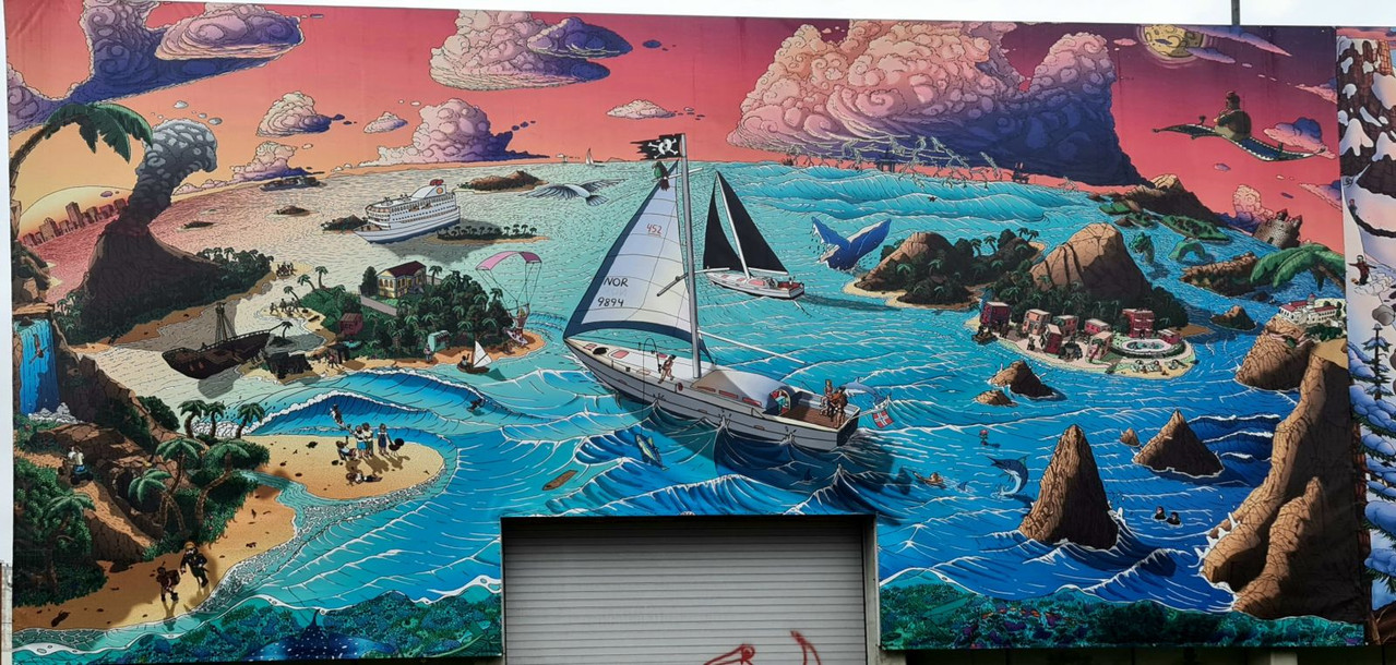 Граффити на скейтпарке «Skur13 skatepark» у причала.