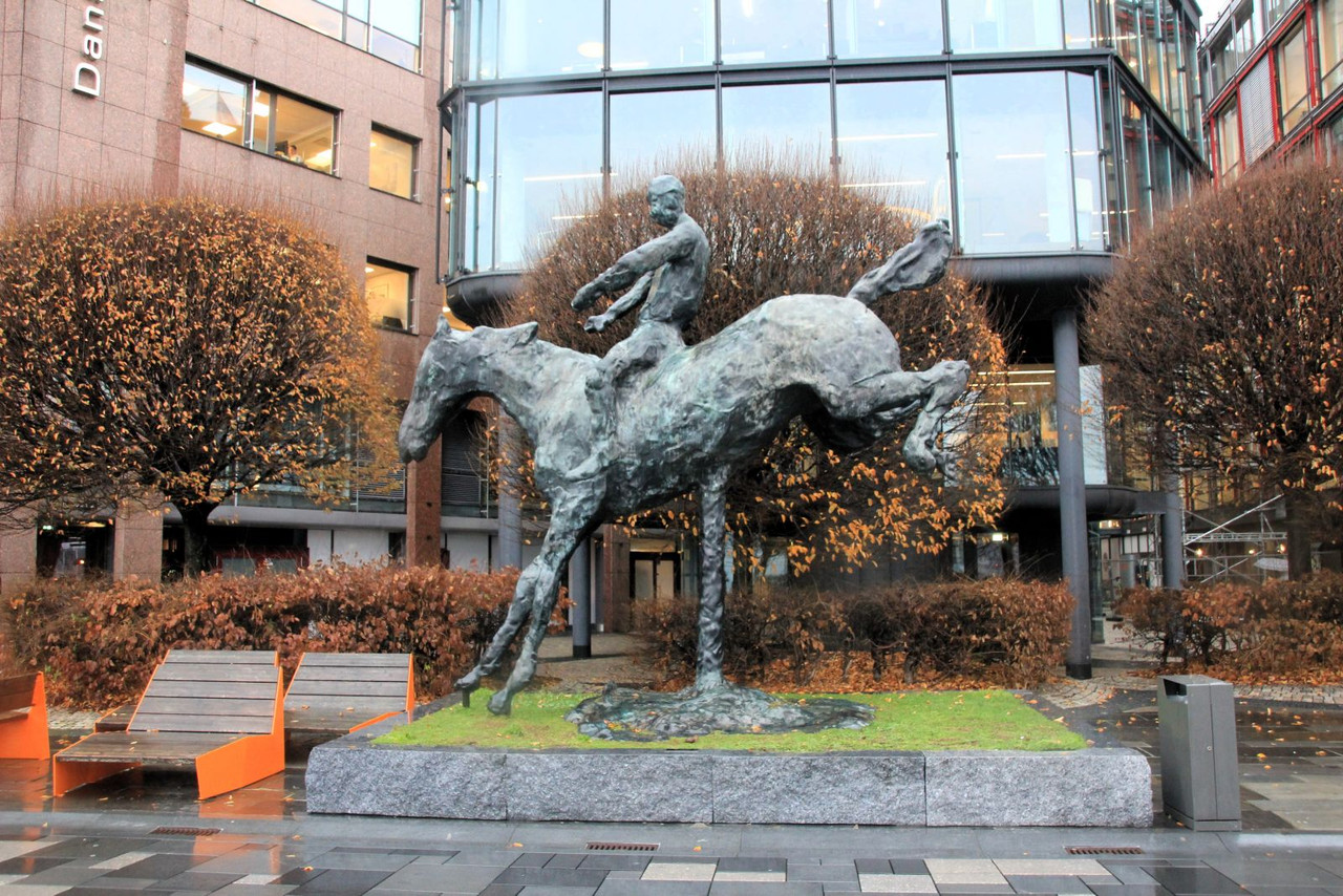 Скульптура «Into the Future» (В будущее) — это бронзовая конная скульптура норвежского художника Tore Bjørn Skjølsvik (Торе Бьёрн Шёльсвик). Она изображает динамичного всадника на вздыбленной лошади, символизирующего движение вперёд, энергию и прогресс.